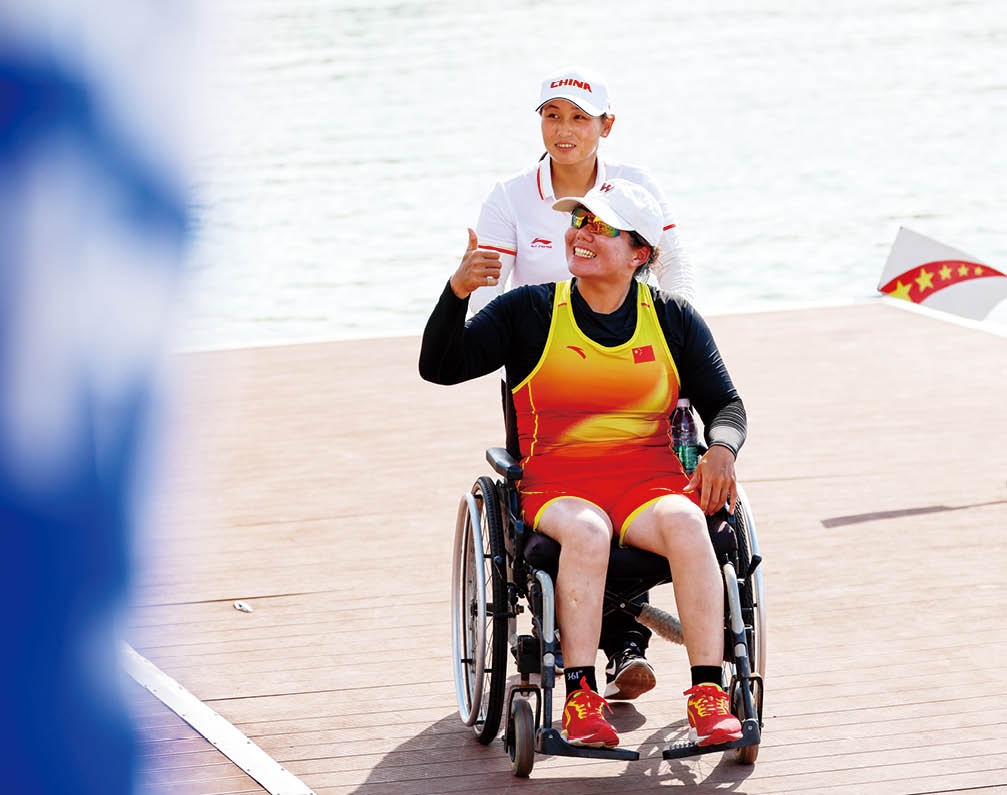 9月26日,中国选手邵莎莎获得2025赛艇世锦赛女子单人双桨(一级残疾)铜牌。摄影/唐润雨