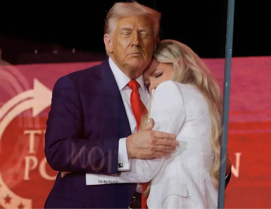 特朗普由轻轻到紧紧拥抱艾莉卡·柯克,亲吻她的双颊,然后拥着她走到讲台,接着一言不发,抚触艾莉卡·柯克后背,似乎有说不尽的悲伤与怀念。艾莉卡·柯克脸庞看着似乎挤出无限悲情,几乎一字一顿地说道:“查理想拯救像夺走他生命那样的年轻人。我原谅他,我原谅他,因为这是查理会做的。查理遇刺后,我们没有看到暴力,也没有看到骚乱,解决仇恨的答案不是仇恨。”接下来,某种程度上艾莉卡·柯克的一些话,似乎在希望美国年轻一代的中产们能够回到祖辈的价值观。她说,希望年轻男性在婚姻和为人父方面以她丈夫为榜样。她称男性是家庭的精神领袖,而妻子是丈夫的帮手,不是“仆人、雇员和奴隶”。