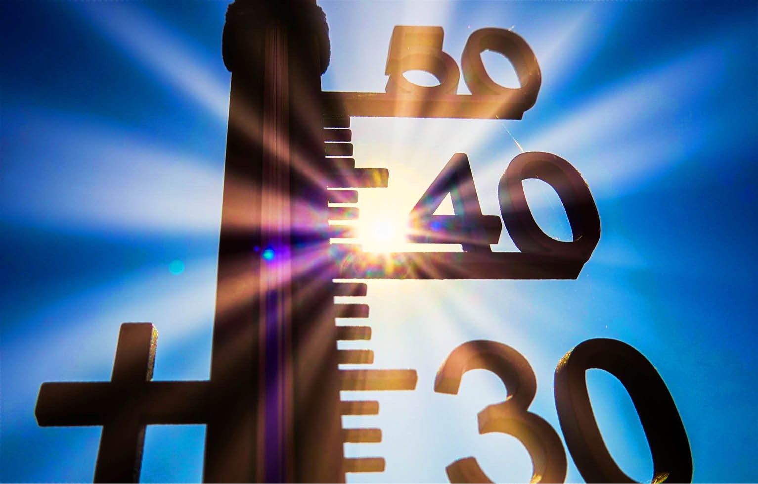 上图:2025年8月13日,某地的温度计显示气温超过40度,酷热难耐。