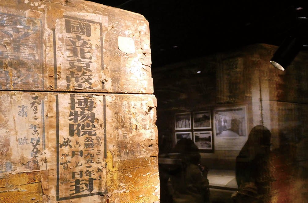 “百年守护”特展中,两幅黑白影像将观众带回近百年前。一张摄于宝蕴楼内,文物正被悉心装箱;一张拍于太和门广场,无数箱件静默集结,等待一场未知的远行。它们如同历史的幕布,无声地上演着那段波澜壮阔的守护往事。
