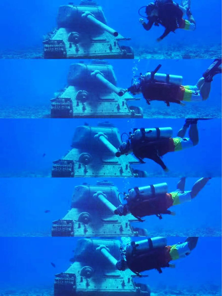 上图:因为久坐发胖,71考取了潜水教练证,从带团到常驻,最终与朋友在菲律宾合伙开起了潜水店。图片由受访者提供