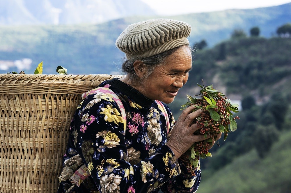 2021年10月25日,凉山州金阳县芦稿镇红联中心村,61岁的花椒种植户张世春手捧花椒开心的笑了。