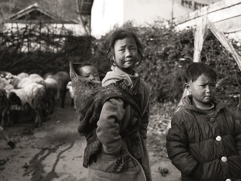 2017年12月23日,凉山州昭觉县依达村。正在放羊的姐弟三人。