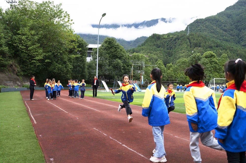 2024年10月21日,巴中市南江县公山镇公山小学,三年级的学生们在进行接力比赛。