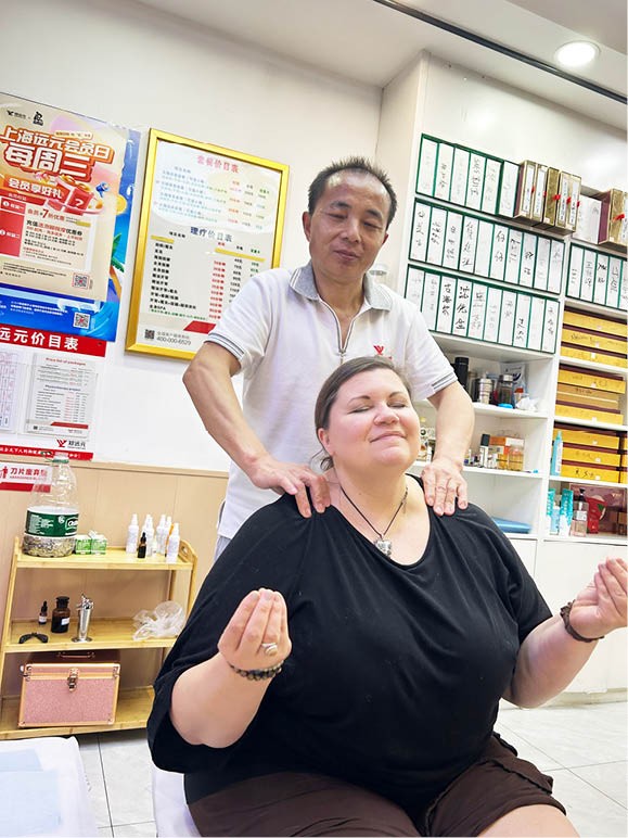 上图:在上海,专业的按摩使Alysia疼痛减轻许多。
