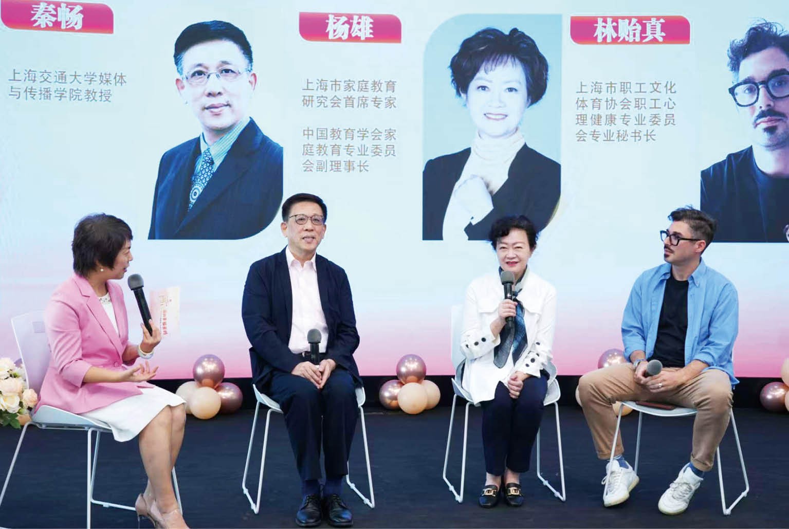 在2025上海智慧女性读书讲坛的圆桌对话环节,主持人秦畅与三位特邀观察员——上海市家庭教育研究会首席专家杨雄,上海市职工文化体育协会职工心理健康专业委员会专业秘书长林贻真,以及上海“洋女婿”、一站式共创博主Alessandro Giustozzi,共同就“家的幸福密码”展开深度讨论。这场对话,既是对分享家庭故事的理论提升,也是对当代家庭问题的现实回应。