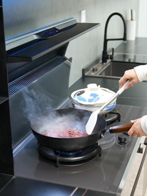 油烟一直是小户型厨房的“老大难”问题。由于空间紧凑,油烟一旦扩散,极易影响客厅和餐厅的空气质量,甚至让整个居家环境蒙上一层油腻感。而火星人X5 Pro蒸烤一体集成灶凭借15cm低空净吸技术,从源头上解决了这一难题。得益于更近的进烟位置,它能在油烟生成瞬间将其迅速吸除,搭配26m³/min的超大风量和1200Pa的强劲静压,即便是爆炒辣椒也不会呛人,日常烹饪时客厅空气始终清新。