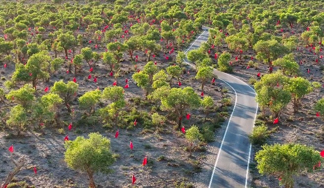 图6 2025面国旗在胡杨林间飘动(李小虎 摄)