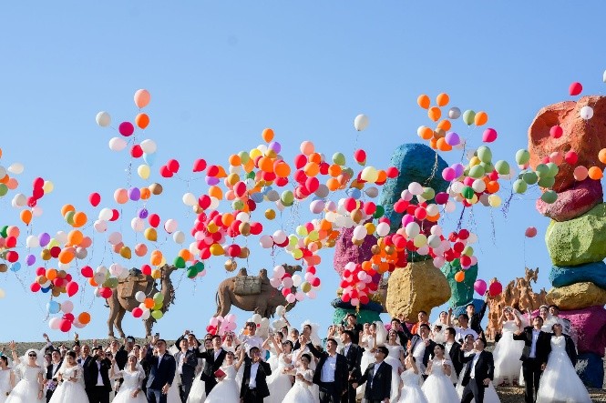 图8 伊吾胡杨百人集体婚礼现场图(李小虎 摄)