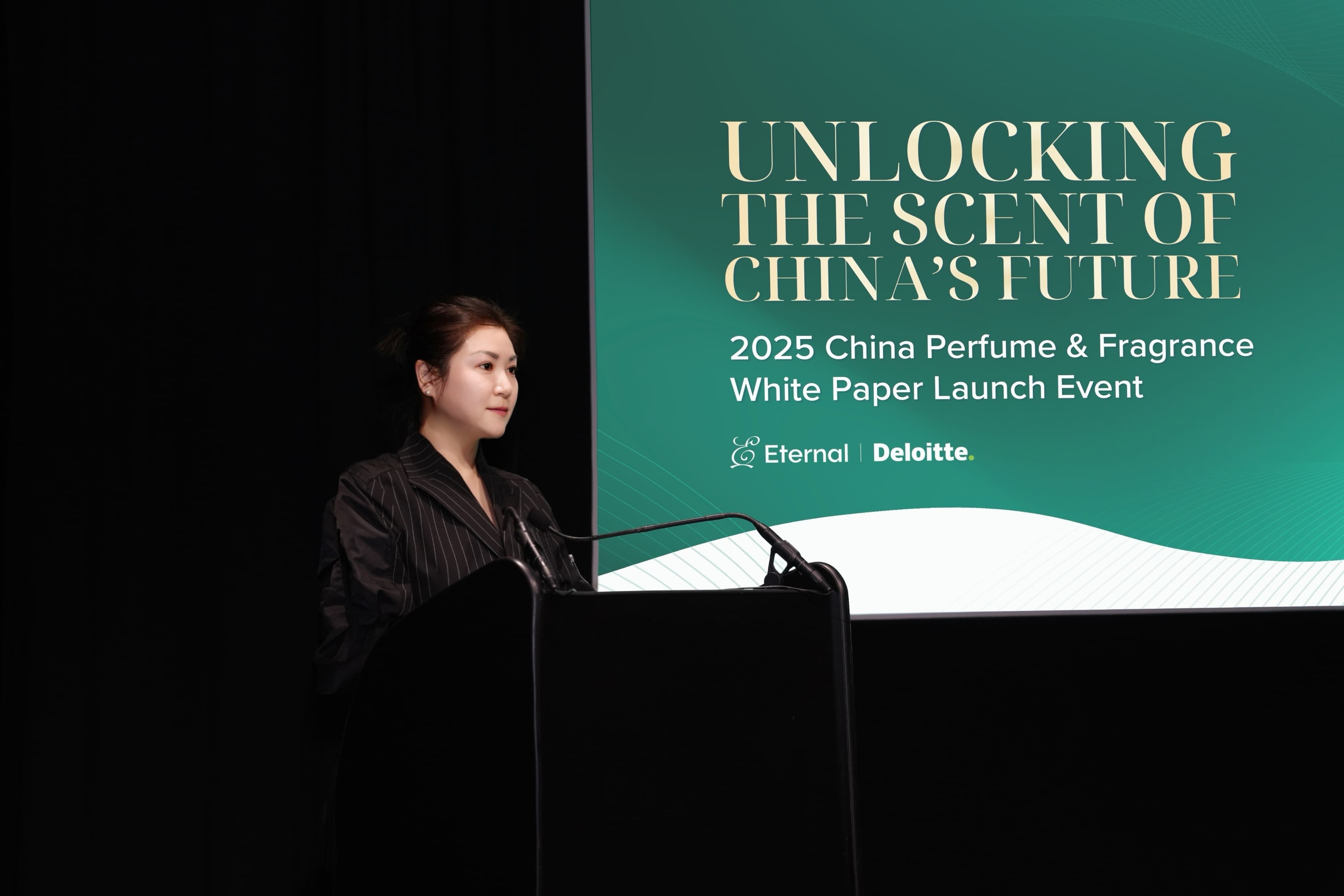 颖通集团首席执行官林荆在现场解读中国香水香氛市场