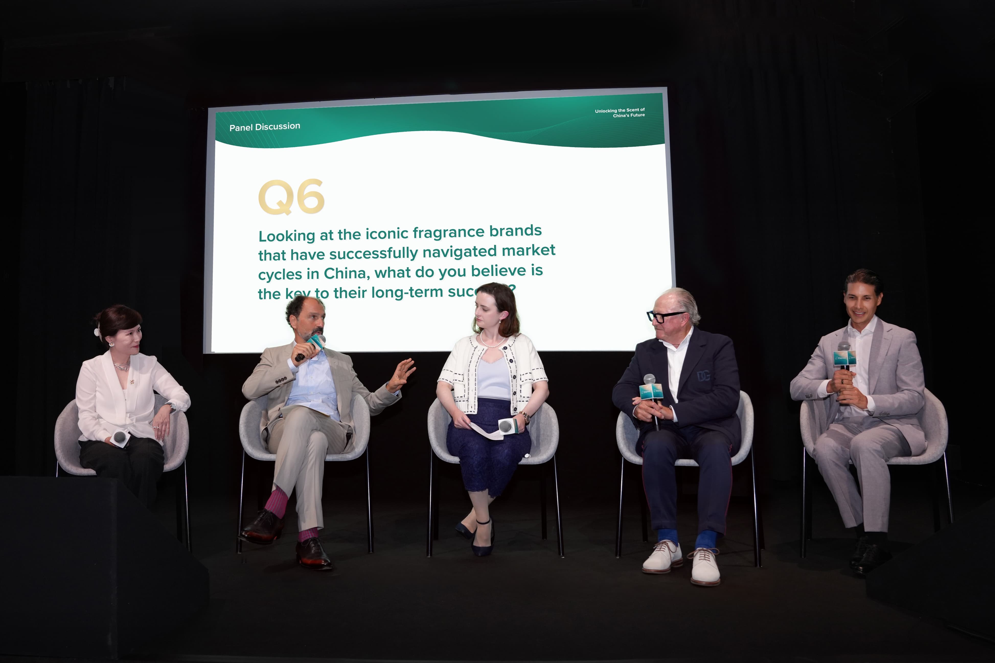 在主题为“中国消费者真正想要什么?”的圆桌讨论中,多位行业专家共同探讨了中国消费者的消费动机变迁、品牌长效建设及社交媒体赋能。在中国,香水不再只是一种香味,更是一种“情感货币”。因此,Alberto Morillas强调:“经典香水的成功依赖于品牌形象与嗅觉签名的高度统一,需建立深刻的情感连接,而不仅追逐短期趋势。”Patrizio Stella则认为:“品牌需在保持基因一致的前提下,灵活本地化——从产品、营销到渠道,深入理解中国消费者演变中的偏好。”