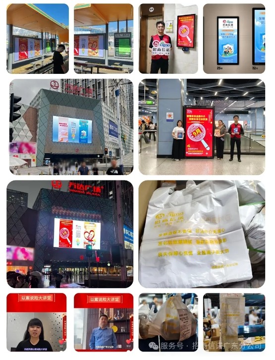 本次活动中,招商信诺广东分公司突破传统宣教范式,通过高频生活场景实现“无感化”知识渗透,同时借力高管IP放大传播效能。户外媒体、交通枢纽、社区电梯与快递包裹的场景联动,结合线上专业内容传播,形成“处处可学、时时提醒”的消保教育生态。