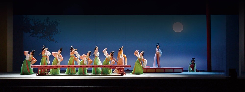 在音乐呈现上,乐队进行了扩编,增强了音乐的层次感与磅礴气势,既严格遵循昆曲曲牌格律,又在《江州送酒》《中秋奏凯》无原始曲谱的情况下,唱腔作曲根据词意和四声腔格规律进行谱曲式作曲,并对《长生殿·重圆》经典唱段予以守正创新。
