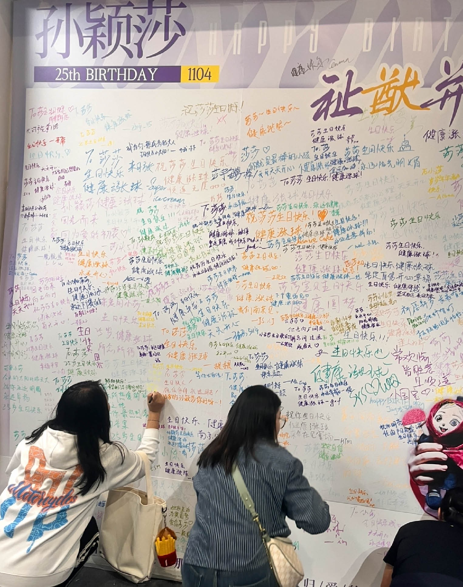 上图:2025年11月4日,全国各地孙颖莎球迷自发组织了生日会,为运动员应援。