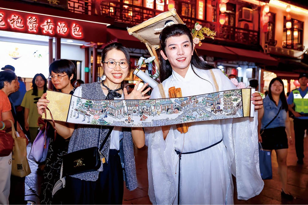 与此同时,为期三天的第八届七宝古镇文化节也在9月22日同一天开幕。本次文化节以“莳花百景,寻香绘卷”为主题,主办方精心策划了一条贯穿七大主题点位的沉浸式游园路线,游客可手持“寻香绘卷”卷轴一路打卡七宝古镇。此外,沿途还隐藏多位特色NPC(非玩家角色),如吟诗作对的“书生”、以物换花的“卖花娘”,更有推着红漆小车的“卖货郎”等,为游客重现古镇往日市井生活的生动画面。