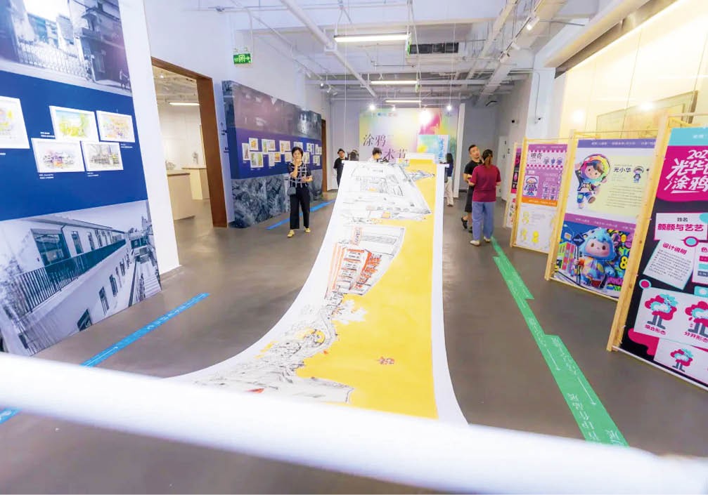 和“金平之夜”异曲同工的是,今年颛桥镇的第九届光华涂鸦艺术节也引入了更多消费场景。自2017年首届光华涂鸦艺术节举办以来,经过不断升级、提升,这项活动已经成为街区闪亮的文化名片与市民共享的艺术盛会——多场美育课堂花样百出,吸引了众多市民报名参与;“速写光华”、两大征集活动如火如荼。