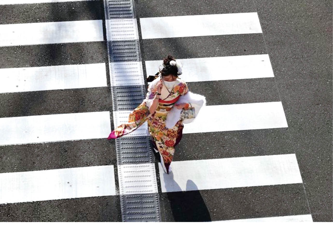 日本自2022年4月1日开始施行的《民法》,成人年龄由原来的20岁下调至18岁。图为2023年1月9日,一名女子在日本横滨准备参加成人礼仪式。