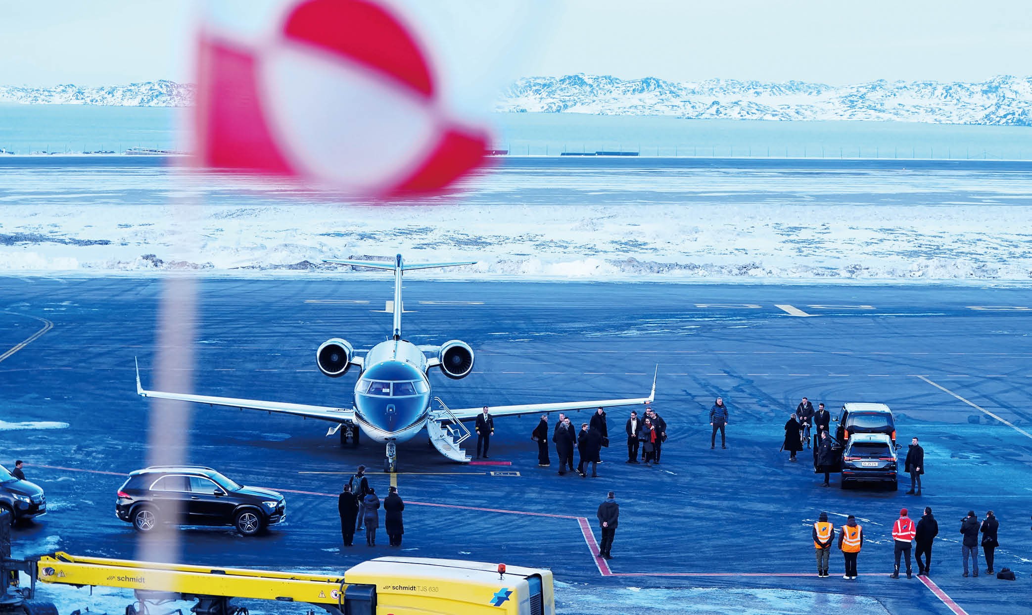1月23日,丹麦首相弗雷泽里克森乘坐飞机抵达丹麦自治领地格陵兰岛首府努克。