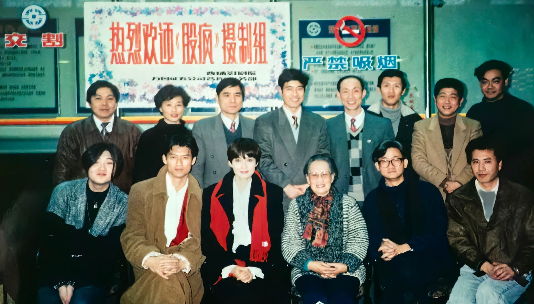 电影《股疯》首映式主创集体照。(前排左三为潘虹,后排右二为王汝刚)
