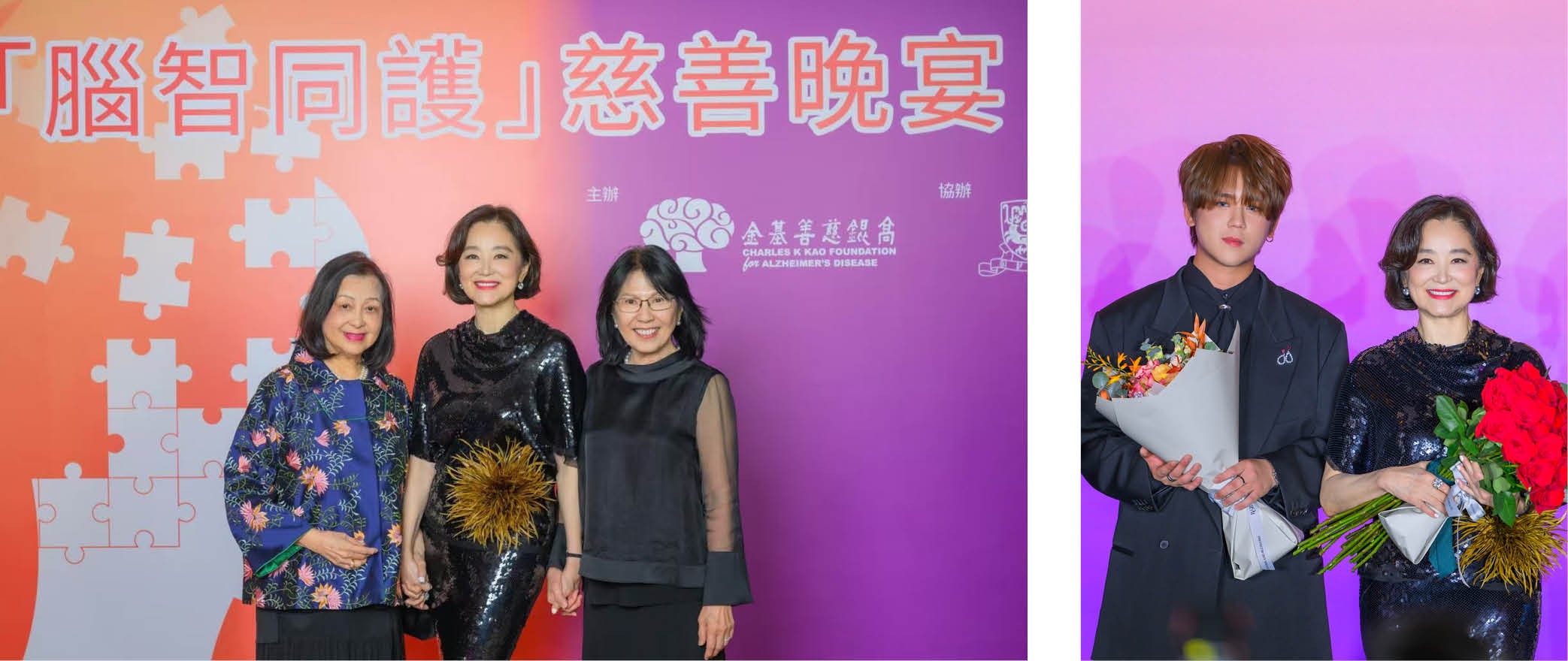 左图:2024年11月9日,“脑智同护”慈善晚宴上,林青霞与金圣华(左)、赵夏瀛合影。摄影/SWKit邓永杰