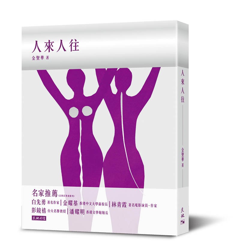 青霞更为我2024年出版的新书《人来人往》设计封面。闪银的底色上,突出两个紫红人形,一前一后,象征着“人来人往”,两者相依,高举双手,一个拥抱过去,一个迎向未来,诉说着生命的愉悦和美好。这是青霞第一次为朋友设计封面,完成后作品陈列在书架上,显得特别亮丽夺目。2026年我即将出版新著《幸福的拼图》,承蒙青霞应允,这次也即将为我设计封面,读者且拭目以待。