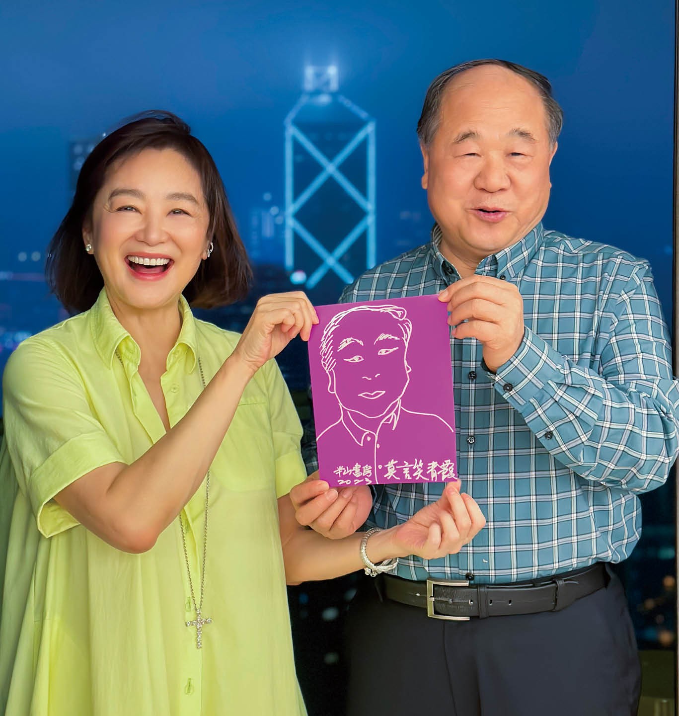 2023年,林青霞在半山书房为莫言画像。摄影/施志咏