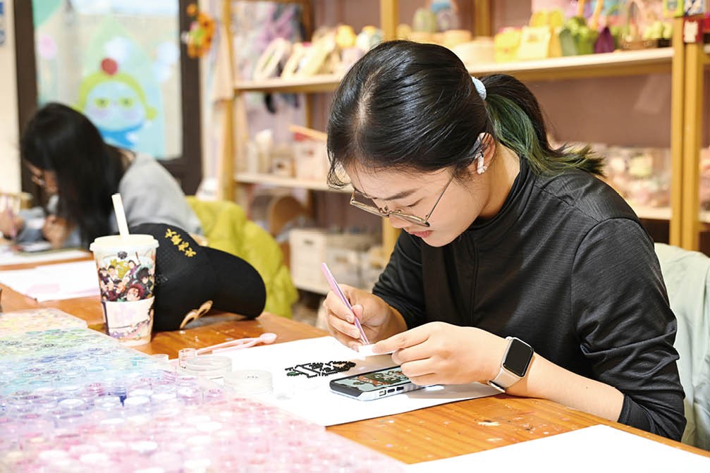 走进拼豆店,满眼都是五颜六色的豆子和专注创作的年轻人。00后陈雨说:“拼豆时,眼里只有豆子和模板,脑子不用想工作,那种专注又放松的感觉,比刷视频还治愈。关键是,任何人只要肯花时间,就可以创造出任何想要的图案。其实和十字绣一样,现在的拼豆就是当年十字绣的塑料版。”