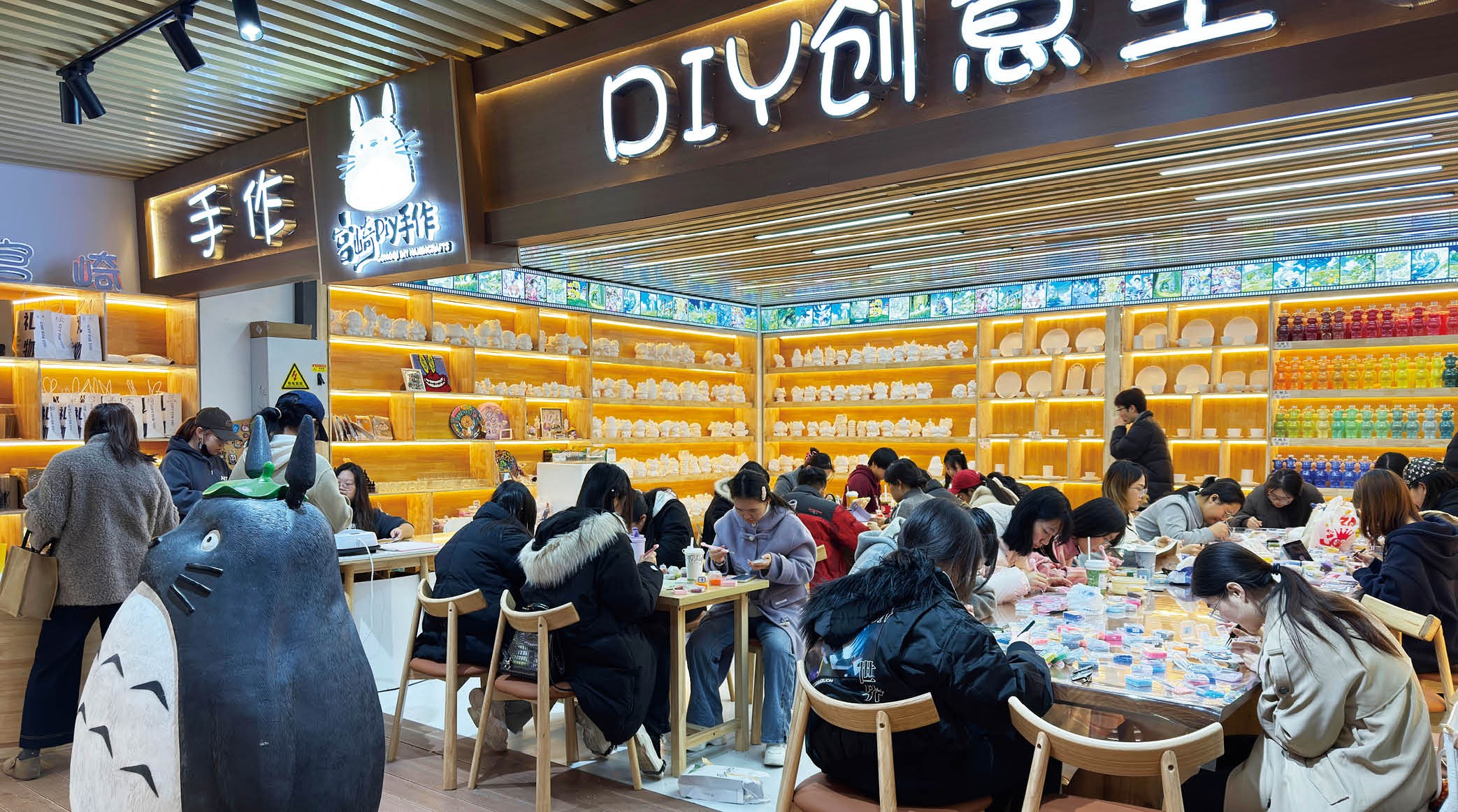 手工店的爆发,本质是年轻人情绪消费需求的集中释放。日常碎片化的信息轰炸,让人们渴望找到一种能让自己完全沉浸的方式。手工创作恰好填补了这个情绪缺口——它门槛不高,人人都能上手;过程专注,能暂时忘却生活烦恼;成品可见,能收获实实在在的成就感。更重要的是,手工店自带社交属性,朋友结伴、情侣同行、亲子互动,都能在这里找到共鸣,成为年轻人社交的新场景。