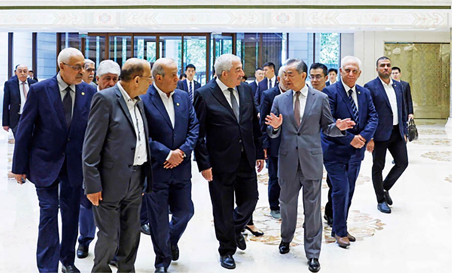 上图:2024年7月23日,中共中央政治局委员、外交部长王毅在北京出席巴勒斯坦各派内部和解对话闭幕式,见证巴勒斯坦14个派别共同签署《关于结束分裂加强巴勒斯坦民族团结的北京宣言》。
