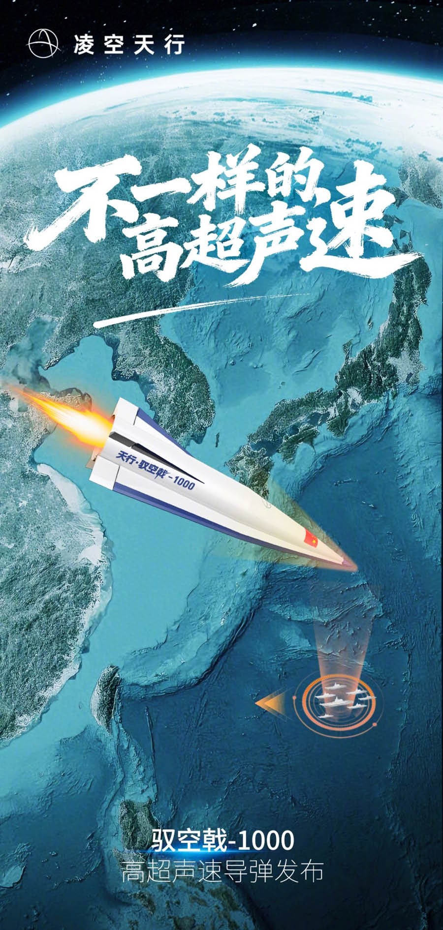 上图:凌空天行发布为“驭空戟-1000”高超音速导弹。