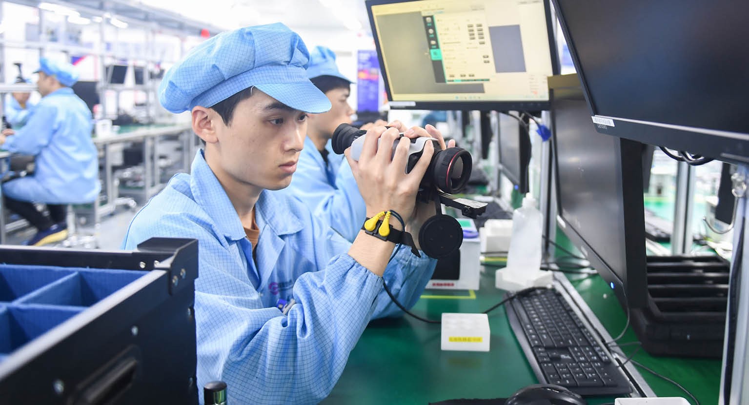 上图:2024年7月,在位于武汉中国光谷的高德红外智感科技产品生产线上,工作人员在对红外热成像仪进行非均匀矫正。高德红外的红外热成像技术,让全球军事界刮目相看。