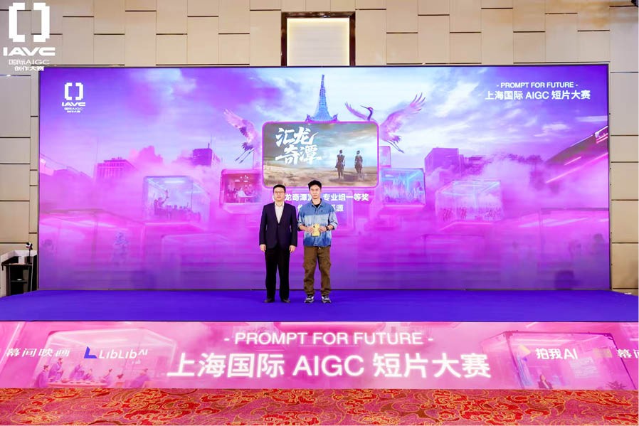其中,专业组由创作者“白马少年”的作品《汇龙奇潭》夺得一等奖,作品取材嘉定民间神话,以AIGC技术重现汇龙潭的传奇起源,成为本届专业组的代表之作;高校组一等奖则由创作者“阿廖沙”的《新城旧事》获得,影片以孩子视角记录家乡更新中的“新”与“旧”,借助AIGC影像语言呈现青年一代对城市记忆与未来发展的思考。两部作品分别从传统故事和当代城市书写出发,为“嘉定故事”提供了截然不同却同样动人的打开方式,也让首次设立的高校组在现场收获了属于新生代创作者的热烈欢呼。