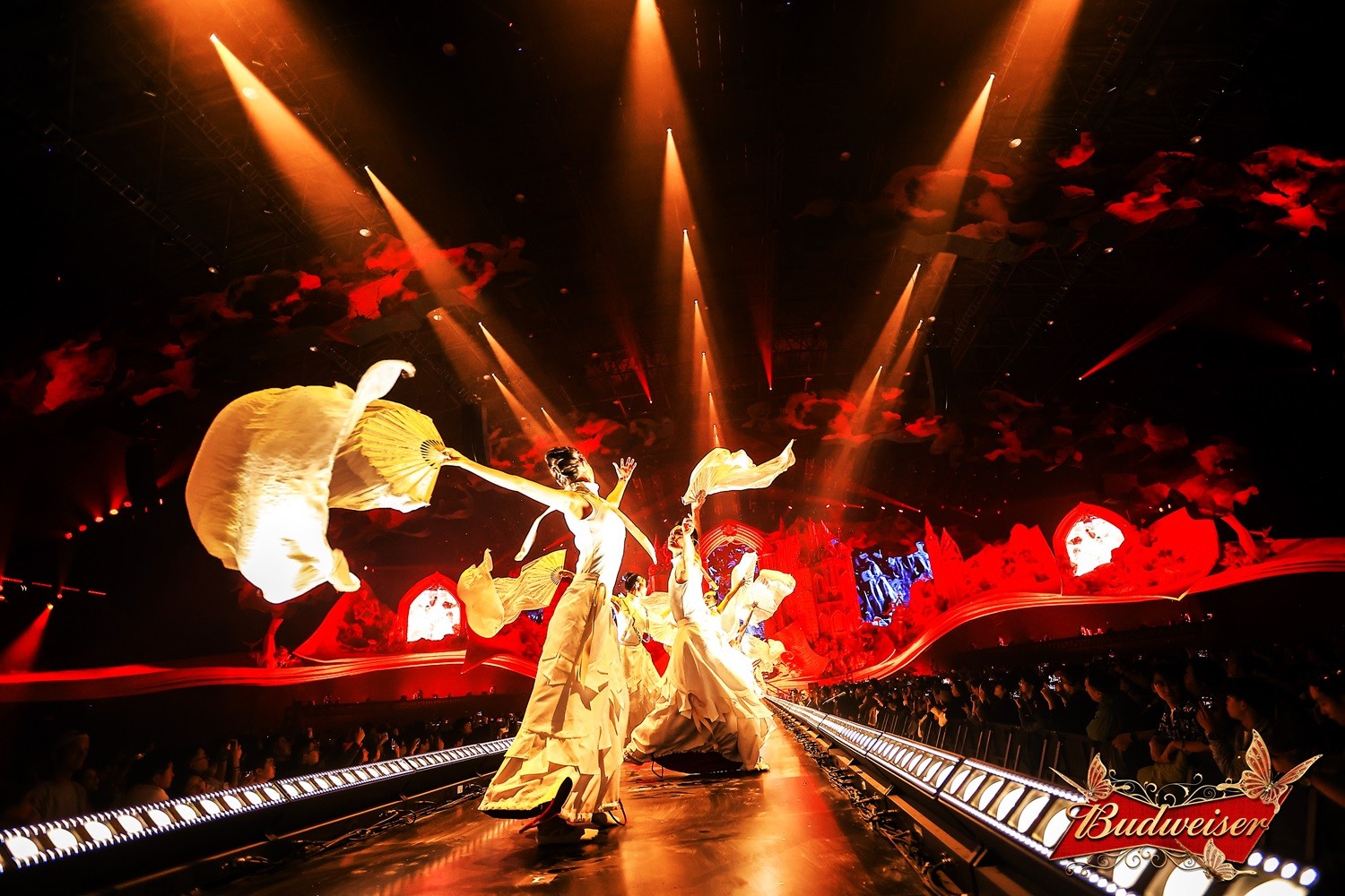 随着演出开幕,在百威舞台,15只中国设计与制造的巨型LED蝴蝶,在约700平方米的LED屏包围下翩翩起舞。长达2000米的特别定制灯带,根据演出曲风,或蓝或红或粉色,营造出不同的氛围。“我们的目标是将Tomorrowland的魔法带到更广阔的全球舞台。”上述Tomorrowland团队表示。