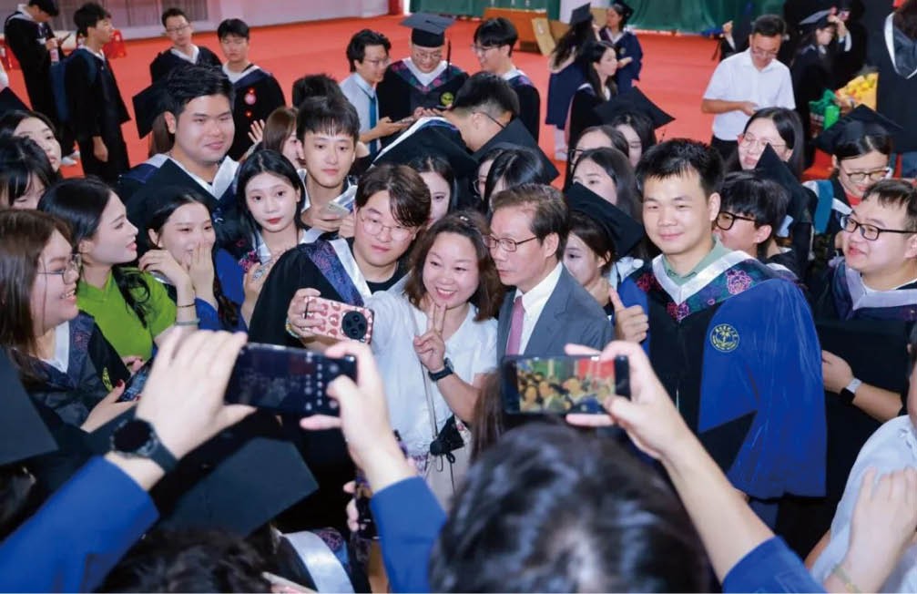 2025年海南医科大学毕业典礼,陈国强校长和毕业生合影。