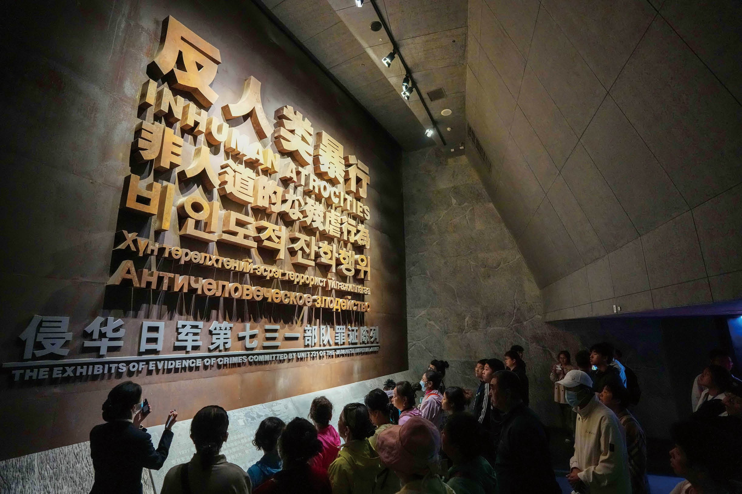 2025年9月18日,人们在哈尔滨侵华日军第七三一部队罪证陈列馆参观。