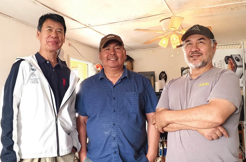 曲枫教授(左一)在阿拉斯加考策布的因纽皮亚克人(因纽特人的一支)家中。