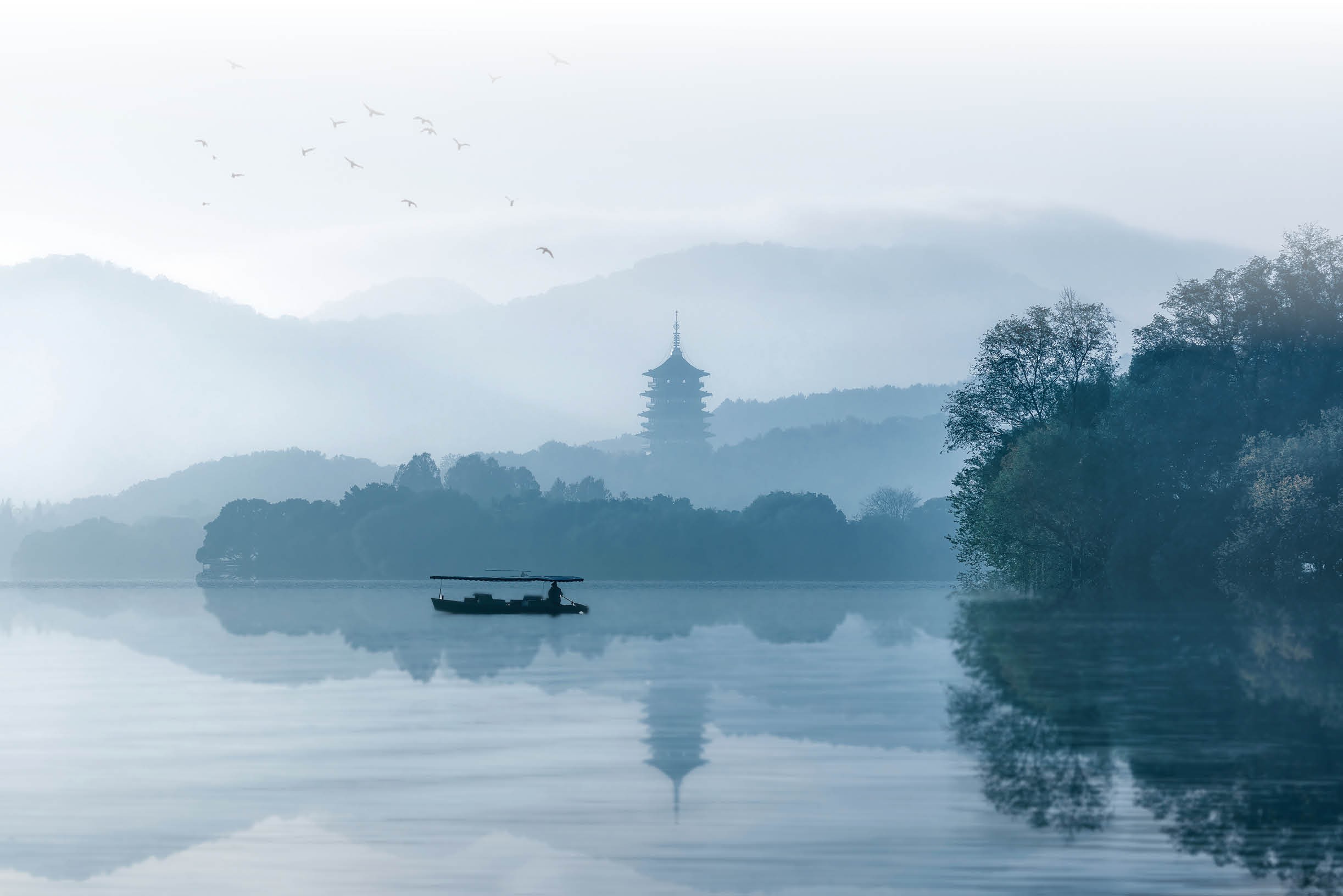 此位“海龙王”的金孙弘俶,穷六年之功于西湖南滨的夕照山建起雷峰塔。此后,作为“西湖十景”之一的雷峰夕照,亦为西湖南线的重要景观。无疑,在杭州城市建设和西湖景观生成的过程中,老钱家厥功至伟。除雷峰夕照外,西湖十景中的南屏晚钟、双峰插云,都和吴越国创建的寺院佛塔相关。六和塔、保俶塔、飞来峰造像、慈云岭造像、烟霞洞造像、钱王祠,至今也还是西湖的历史文化地标。