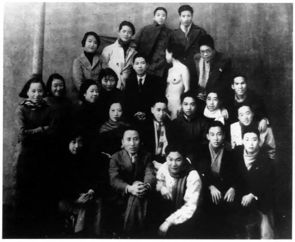 刘海粟是否为“人体模特写生”第一人?答案是否定的,因为真正的第一人,乃刘海粟所崇拜的李叔同。李叔同出家前,曾任“浙一师”美术兼音乐老师,他1914年即采用人体模特教学。一帧当年上写生课时的黑白照片很方便即能查到:课桌上站一背对镜头的裸体男性模特,他的正前方是架着画板集体写生的场景。身着长衫的李叔同则站在后排右二位置。那刘海粟开人体写生课是什么时候?据他的文章《人体模特儿》披露:“溯自民国四年(1915)三月有人体模特儿之实习。”这里面有两点须留意:一是李叔同和刘海粟教学所用的模特起初皆为男性,到了1920年,刘海粟方启用女性模特。所以我们得出的初步结论是,近代美术教育,李叔同首先使用人体模特上课;刘海粟首先使用女性人体模特教学。