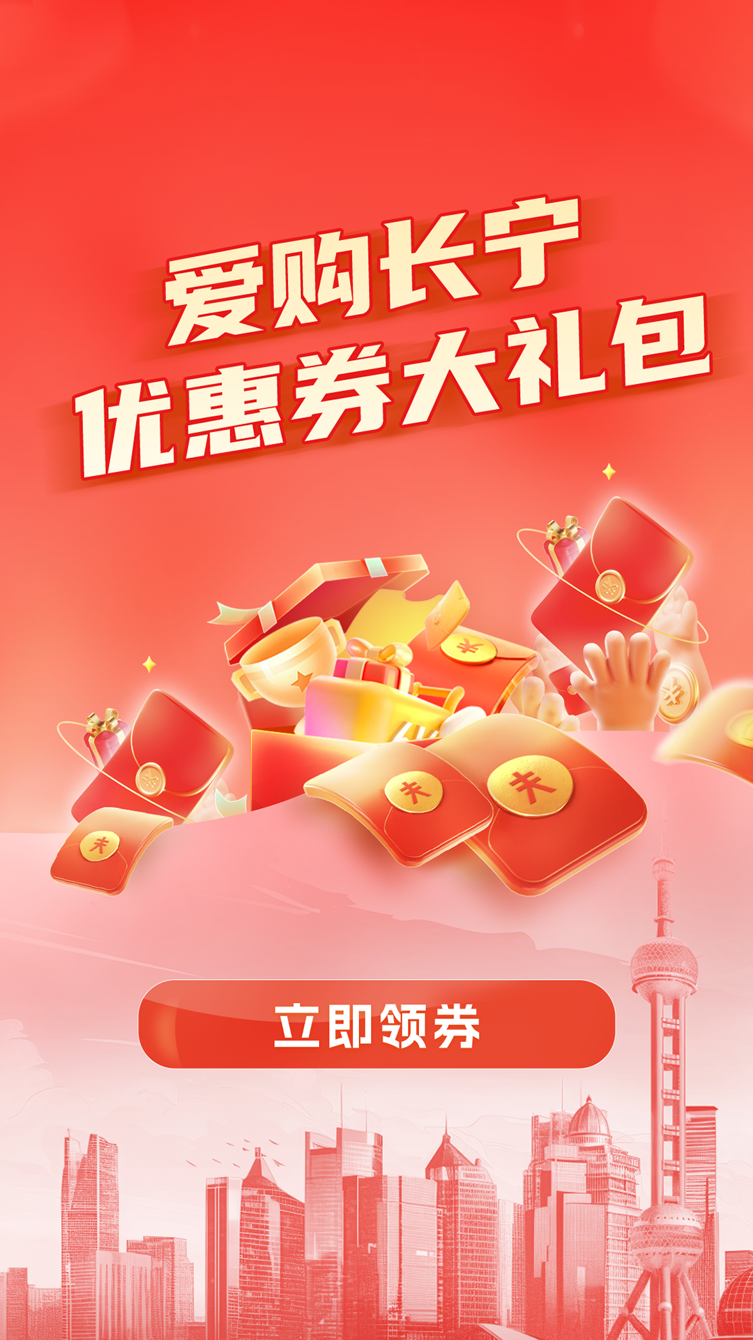 “爱购长宁优惠券大礼包”活动由区商务委、区融媒体中心联合主办,将于4月30日率先上线,下载“上海长宁”官方APP,点击活动主界面领取大礼包,即可成为首批幸运儿。