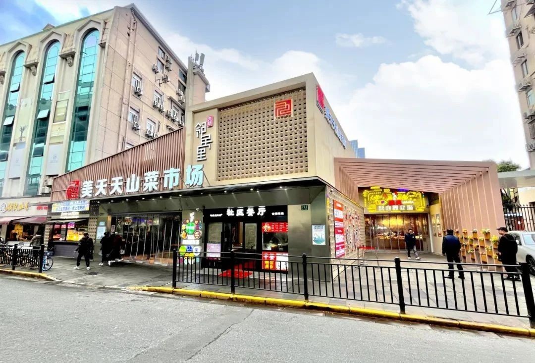 位于新渔东路380号的九华邻居里·美天新渔菜市场,背靠缤谷广场威宁路地铁站,周边辐射多个社区、学校、商务楼宇、老年公寓,社区生活氛围浓郁,是美天副食品公司最早打造的以菜市场为主、商业为辅的标杆型智慧化菜市场,于2020年11月改造一新,开门迎客。