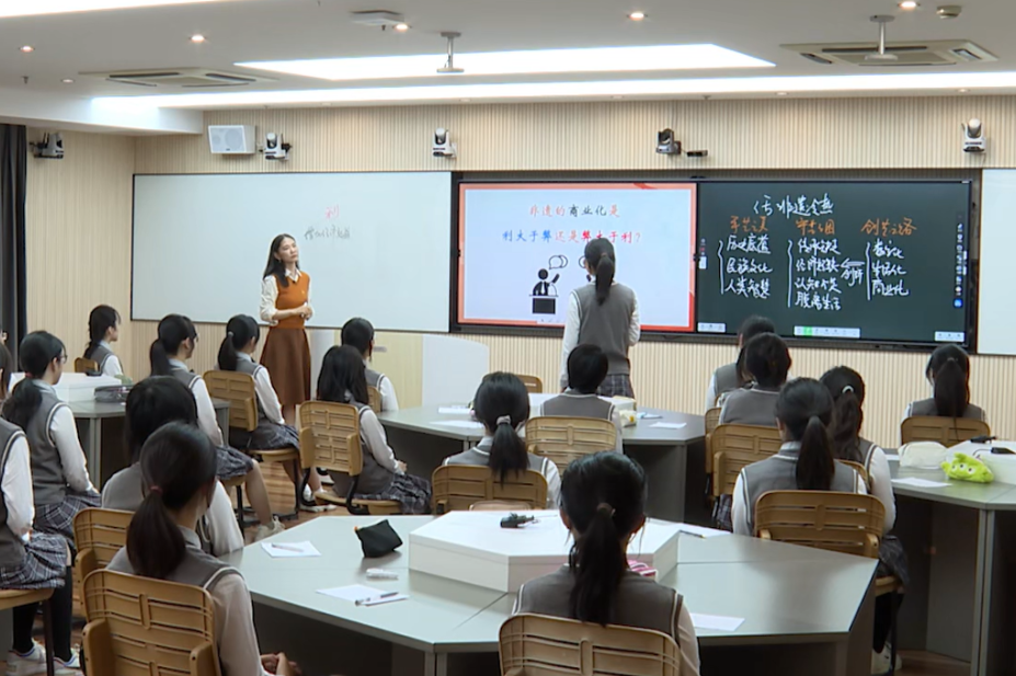 面对具有一定思辨能力的高中生,怎样组织班级理性讨论社会热点、引导学生知、情、行合一?钱仲薇用一场主题班会案例给出答案。“学农期间,有些同学体验了非遗活动,但针对如今非遗的商业化和雷同现象,他们也产生了对于传承传统文化意义的疑惑。”
