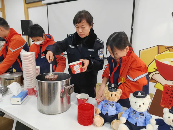 不同于其他街道,今天,程家桥街道的宝北居民区是将居民们自家熬的腊八粥送到了高龄老人、沿街商户手中。一大早,香甜的腊八粥从一户户志愿者家中收集,“当心拿稳哦!”阿姨们端着满满一锅粥,倒入大保温桶内。而后,程家桥街道执法大队的队员们和哈密路小学的孩子们共同分装腊八粥。孩子们有条不紊,熟练地帮忙打包,随后与志愿者们一同走进小区,上门为高龄老人送上一碗碗热乎的腊八粥。