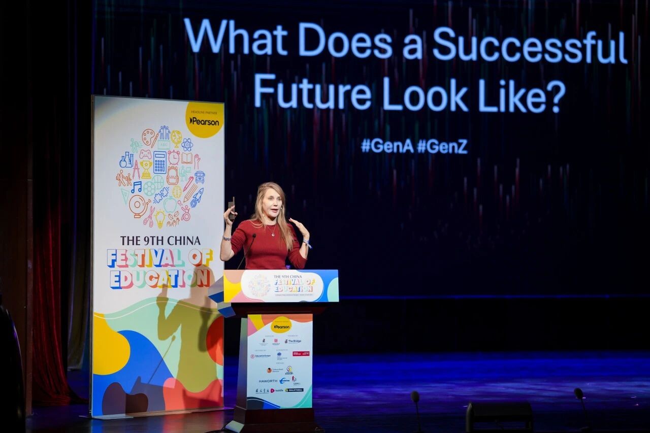 本届教育节设置上午、下午两场主旨演讲。开幕主旨由作家、Z世代与α世代研究专家Chloe Combi带来,题为《携手Z世代与α世代迈向2030年代:中国教育趋势洞察与应对策略》。她以年轻人所处的时代语境为经纬,梳理其所面临的多重挑战。谈及技术变革对未来的影响,Chloe指出,人工智能正在重塑年轻一代的就业路径,并带来新的压力与不确定性:“人工智能正在蚕食入门级岗位,而这些正是年轻人在职业起步阶段会从事的工作。”尽管直面挑战,她在演讲尾声仍保持审慎的乐观,并强调教育应着力培养孩子的关键品质与能力,如批判性思维、服务精神与广博视野等,而这些是可以在持续的学习与实践中逐步养成的。