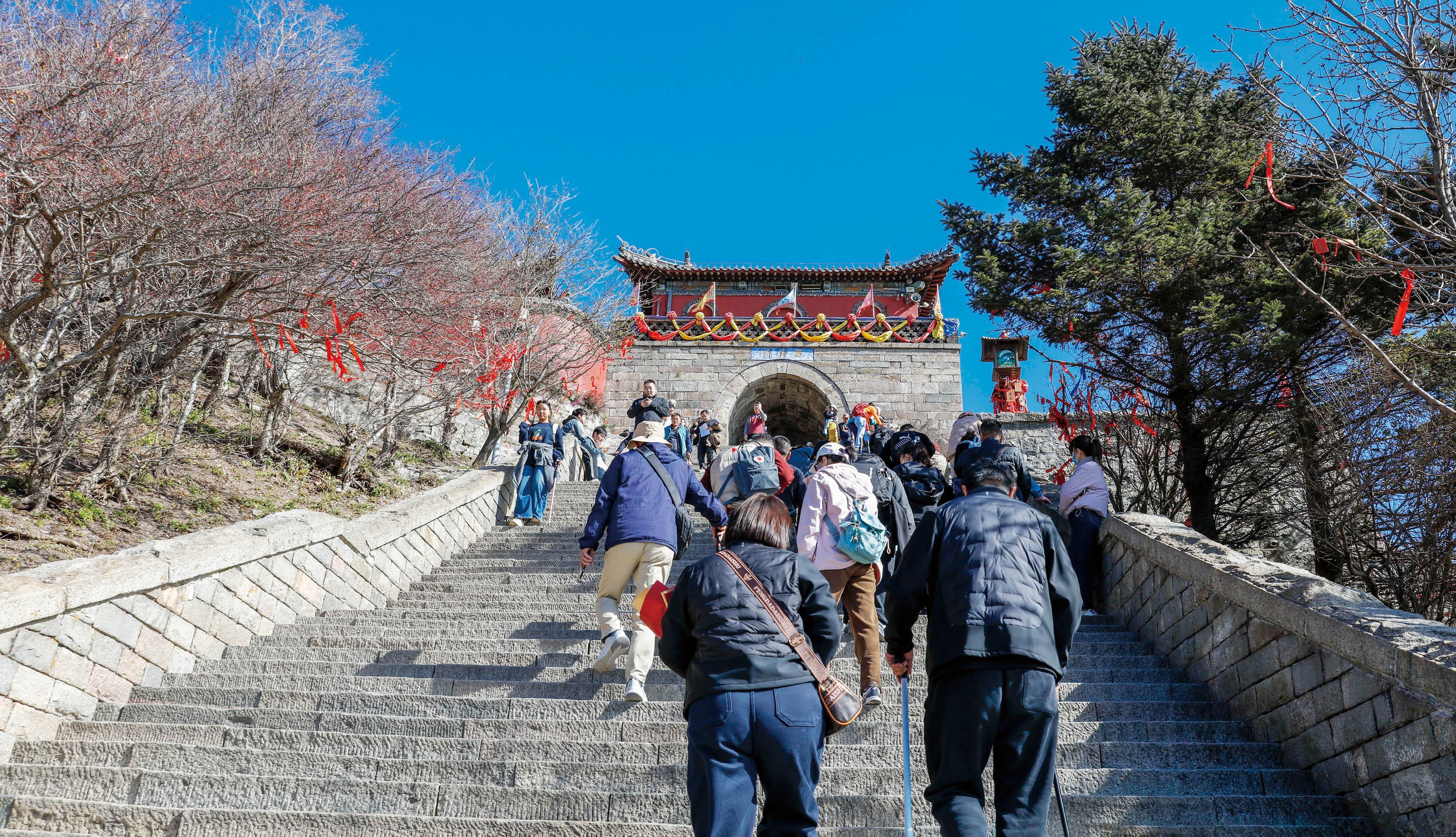上图:2025年11月6日,秋高气爽,游客纷纷登上泰山欣赏最后一抹秋色。