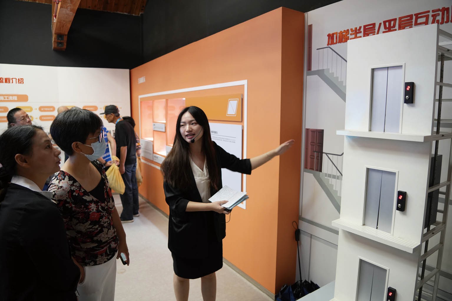 上图:上海市普陀区老旧小区加装电梯现场会工作人员向居民代表介绍加装电梯一系列知识。摄影/张龙