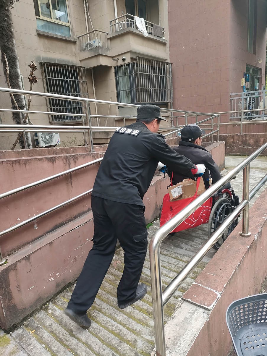 2024年五一劳动节时,居委会和闵房物业商量,希望把“家门口的服务站”的服务送到需要的老人家中。为此,闵房物业服务人员中的保安、保洁、维修等人员加入了养老志愿服务队伍,建立定期上门关爱巡视机制,及时发现并解决老年人家庭中的各类问题隐患。