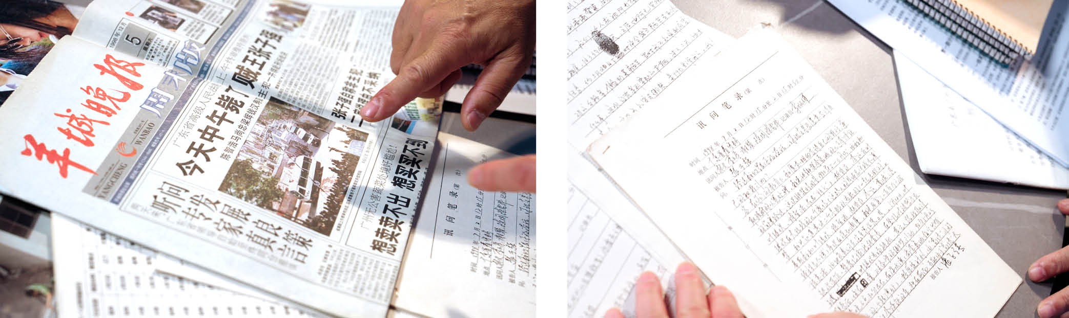 刘海陵保留的当年报道张子强被执行死刑的报纸及张子强审讯笔录复印件。摄影/王哲