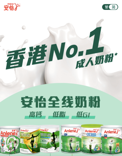 *NO.1指的是安怡低脂奶粉全港销量冠军,销售额及销售数据根据NielsenIQ2008年03月至2024年02月全港成人奶粉(低脂奶粉类别)零售调查报告(包括任何人士经超市及药购买总数量);安怡奶粉在印度尼西亚、马来西亚、泰国的成人奶粉类别销量冠军,销售额及销售数据根据NielsenIQ2023年07月至2024年06月零售调查报告