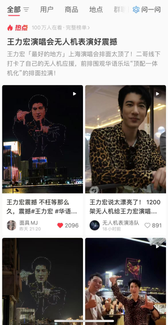 表演画面通过直播和现场观众拍摄,迅速刷屏社交媒体,抖音相关片段播放量3小时破亿,#王力宏上海演唱会无人机排面拉满#等话题迅速登上热搜榜,相关话题阅读量狂飙至5亿。