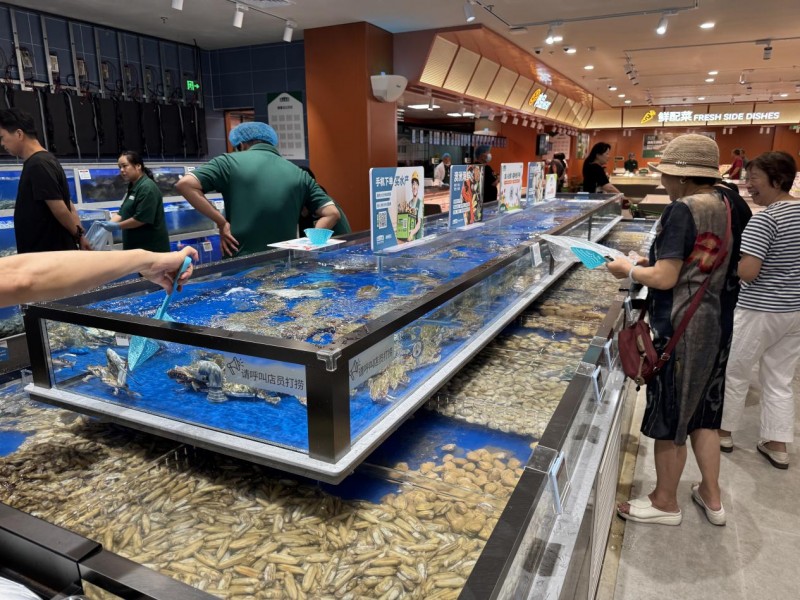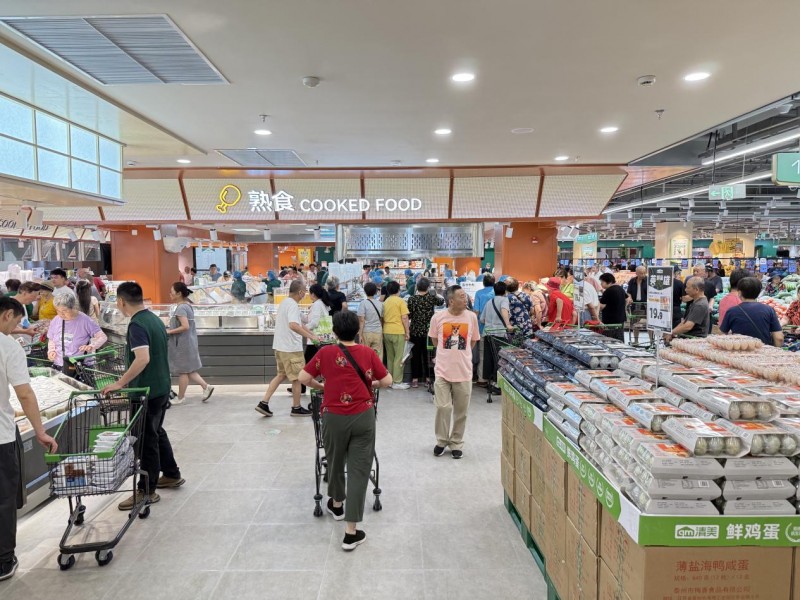 服务方面,超市推出“四大免费”承诺:买贵退差价、免费加热熟食、免费开榴莲(肉不够多包退)、免费杀鱼切肉。开业当天,仅免费剖鱼服务台便处理超千单需求,显著提升消费者购物便利性与满意度。